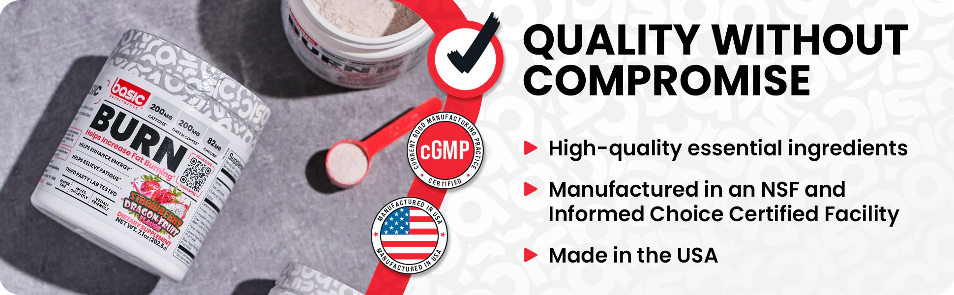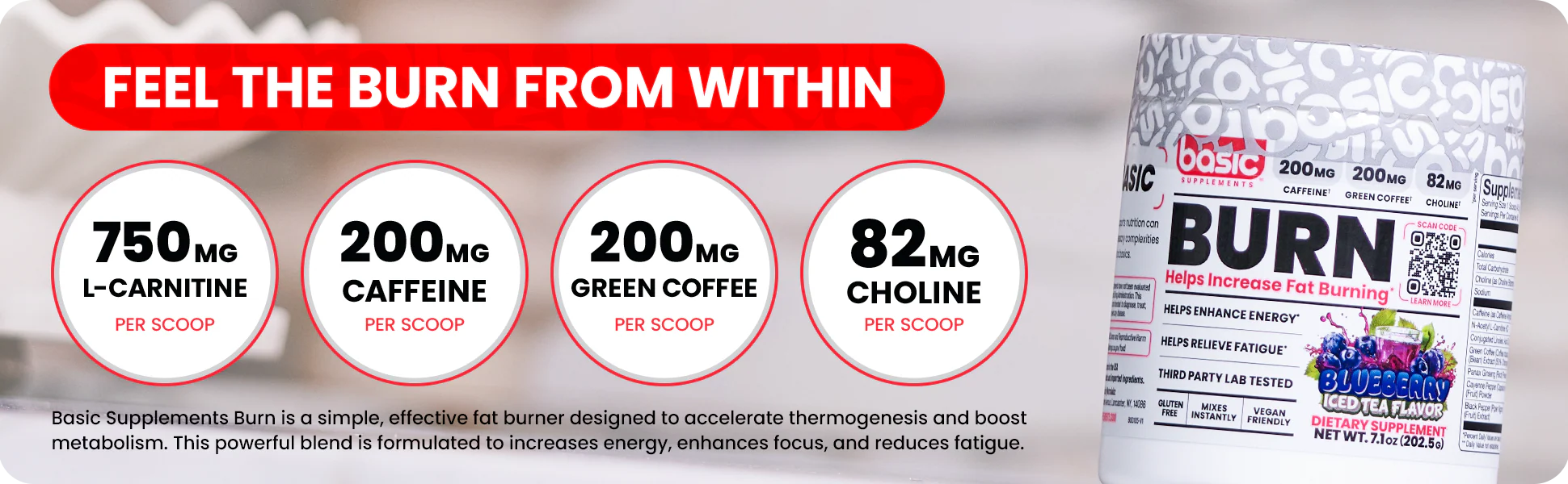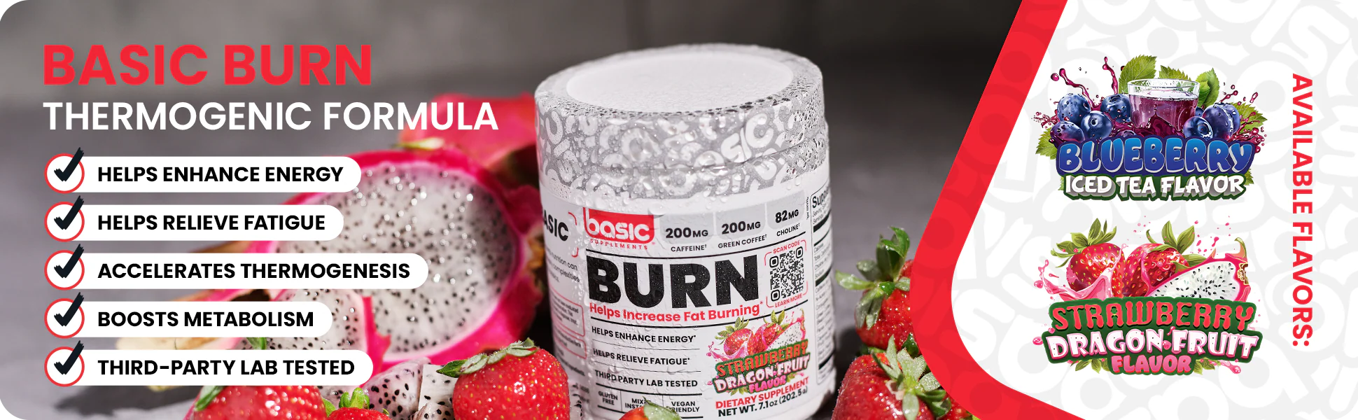 Basic Burn is our simple, effective fat burner designed to accelerate thermogenesis and boost metabolism. This powerful blend increases energy, enhances focus, and reduces fatigue through its combination of: